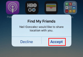 步驟2:添加來自查找我的朋友應用程序的朋友。