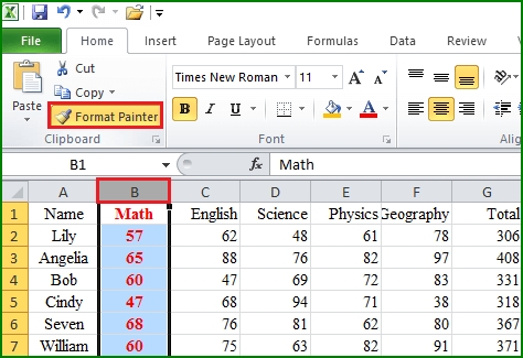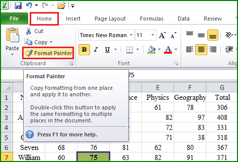 在 Excel 中使用格式刷將節省大量時間,幫助您將相同的格式應用到工作表中的多個單元格,例如單元格背景顏色、字體樣式和大小、字體特徵(粗體、斜體和下劃線)、單元格邊框以及此處未提及的許多其他格式。現在我們來談談如何在Excel 2010中使用格式刷。