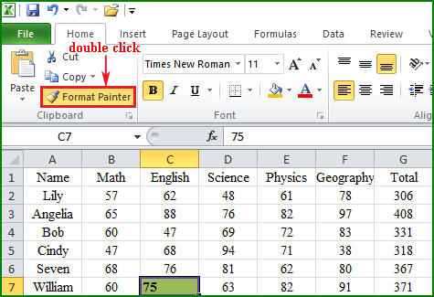 步驟1。按兩下格式刷選擇要從中復制格式的單元格後的圖標。