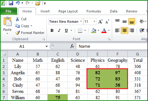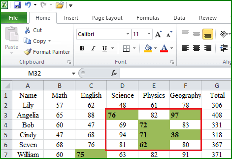 完成這三個步驟後,您可以發現這些單元格已被格式化為您在其中選擇的單元格步驟1。在這種情況下,目標單元格變為粗體,居中對齊,並獲得綠色背景顏色作為單元格C7。