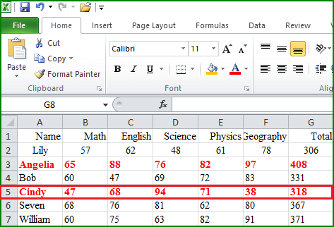 在這種情況下,第 5 排變為粗體、紅色並以以下方式左對齊第3行。