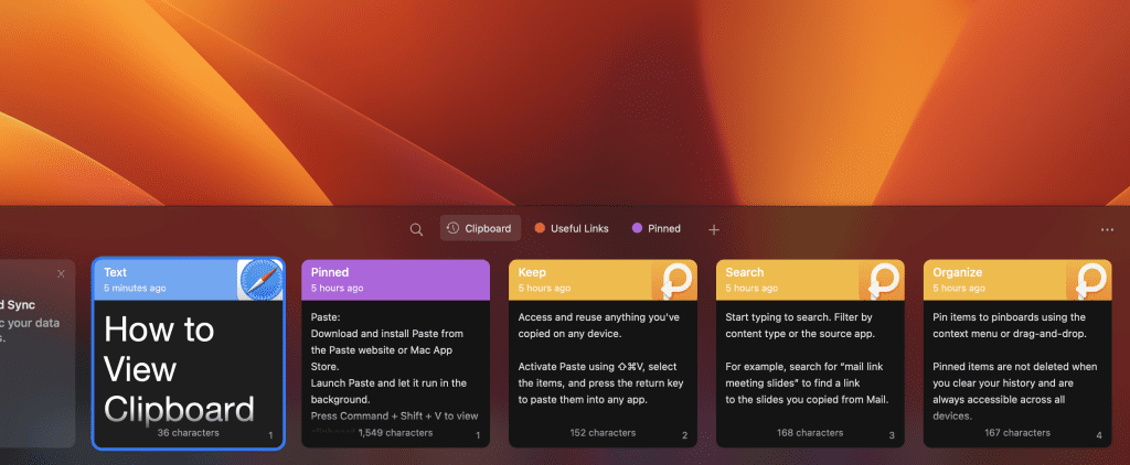 與 Windows 不同,macOS 沒有內置的剪貼板歷史記錄管理器。要查看和管理多個複制的項目,您需要第三方工具,例如粘貼,複製剪輯, 或者整潔,它允許您有效地存儲、搜索和組織剪貼板歷史記錄。