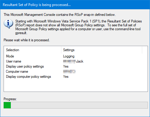 - 策略結果集工具將開始掃描您的系統以查找已應用的組策略。