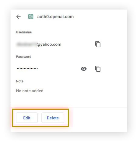 點擊編輯要更改您的密碼,請確保它與您擁有帳戶的網站上的密碼匹配。