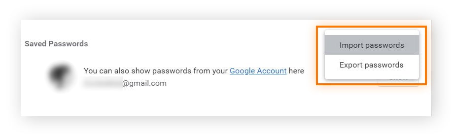 然後,您需要從 CSV 文件導入密碼。如果您導出密碼,它們將自動保存為 CSV 文件。