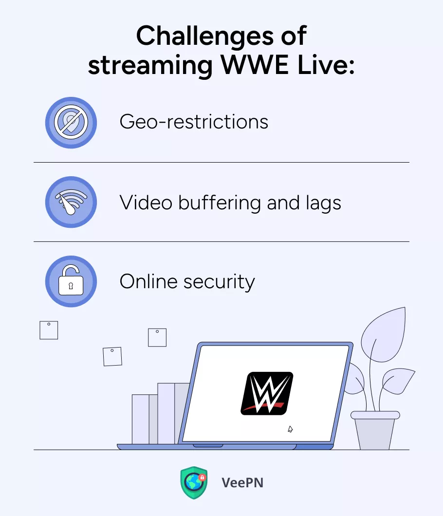 ⛔地理限制。許多優質流媒體服務僅限於美國,因此在出國旅行時幾乎不可能訪問它們。這樣,您將無法在美國境外觀看 WWE 節目。