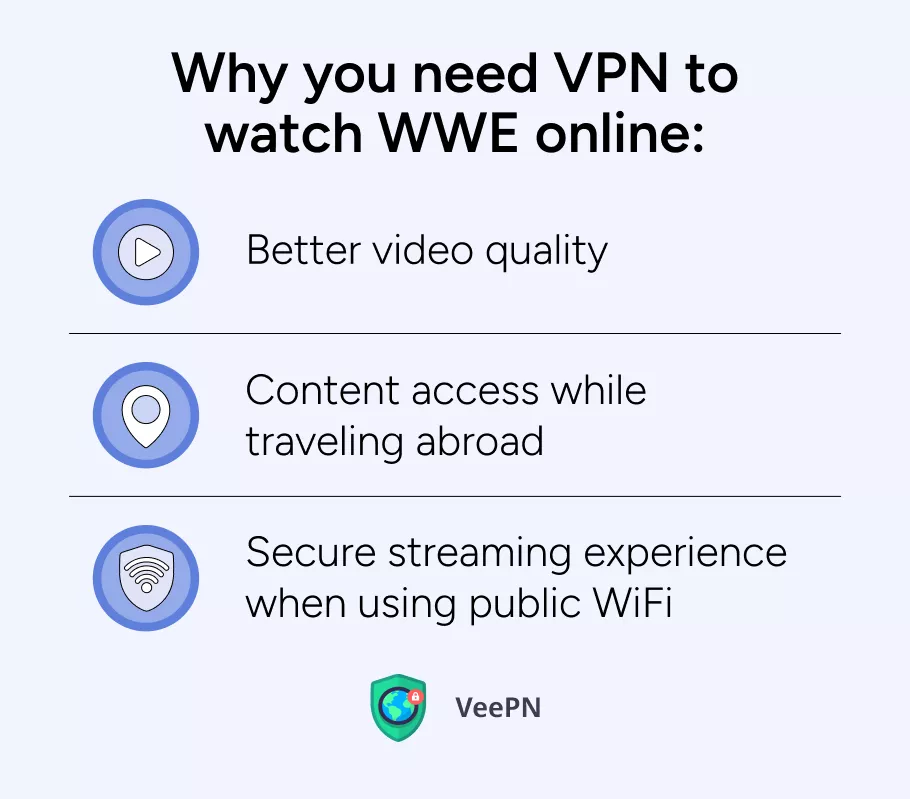 使用 VPN 應用程序在線觀看 WWE 會給您帶來一些難以低估的好處: