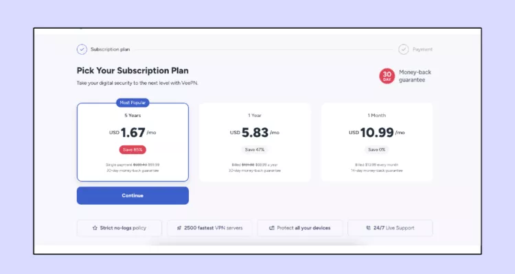 - 如果您還沒有訂閱,請訪問 https://veepn.com/pricing/ 進行訂閱。