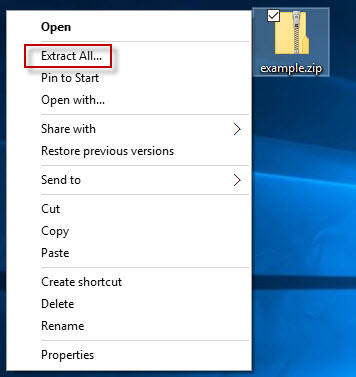 第 1 步:右鍵單擊要解壓縮的 .zip 文件,然後選擇全部提取從上下文菜單。