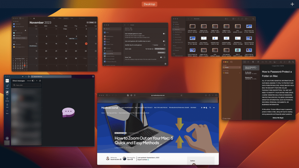 任務控制是您的Mac的命令中心,顯示了所有打開的窗口,以簡化任務切換。雖然不是傳統的縮放,但它提供了清晰的工作區概述。這是使用它的方法: