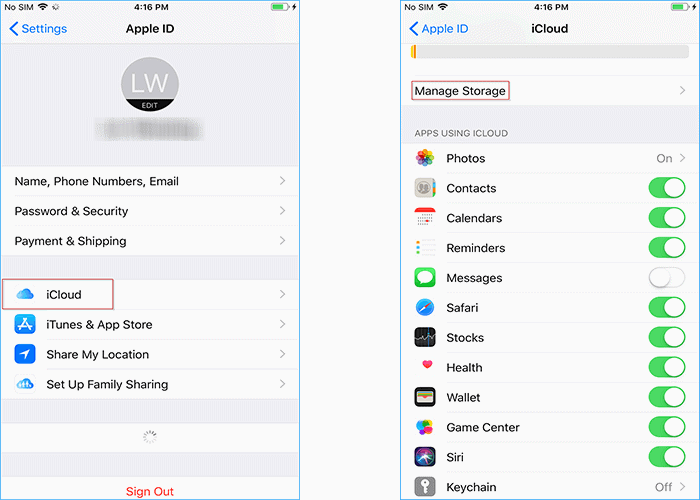 重新啟動 iCloud 備份的另一種方法是重新登錄您的 iCloud 帳戶。這種簡單的方法可能會解決一些 iCloud 備份問題,包括“iCloud 備份因存儲空間不足而失敗”問題,值得嘗試。