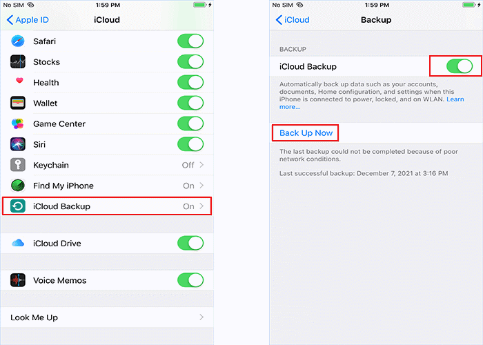 iCloud 設置問題也可能導致“iCloud 備份因存儲空間不足而失敗”問題。要修復此問題,您可以嘗試通過重新啟動 iCloud 備份來將 iPhone 再次備份到 iCloud。