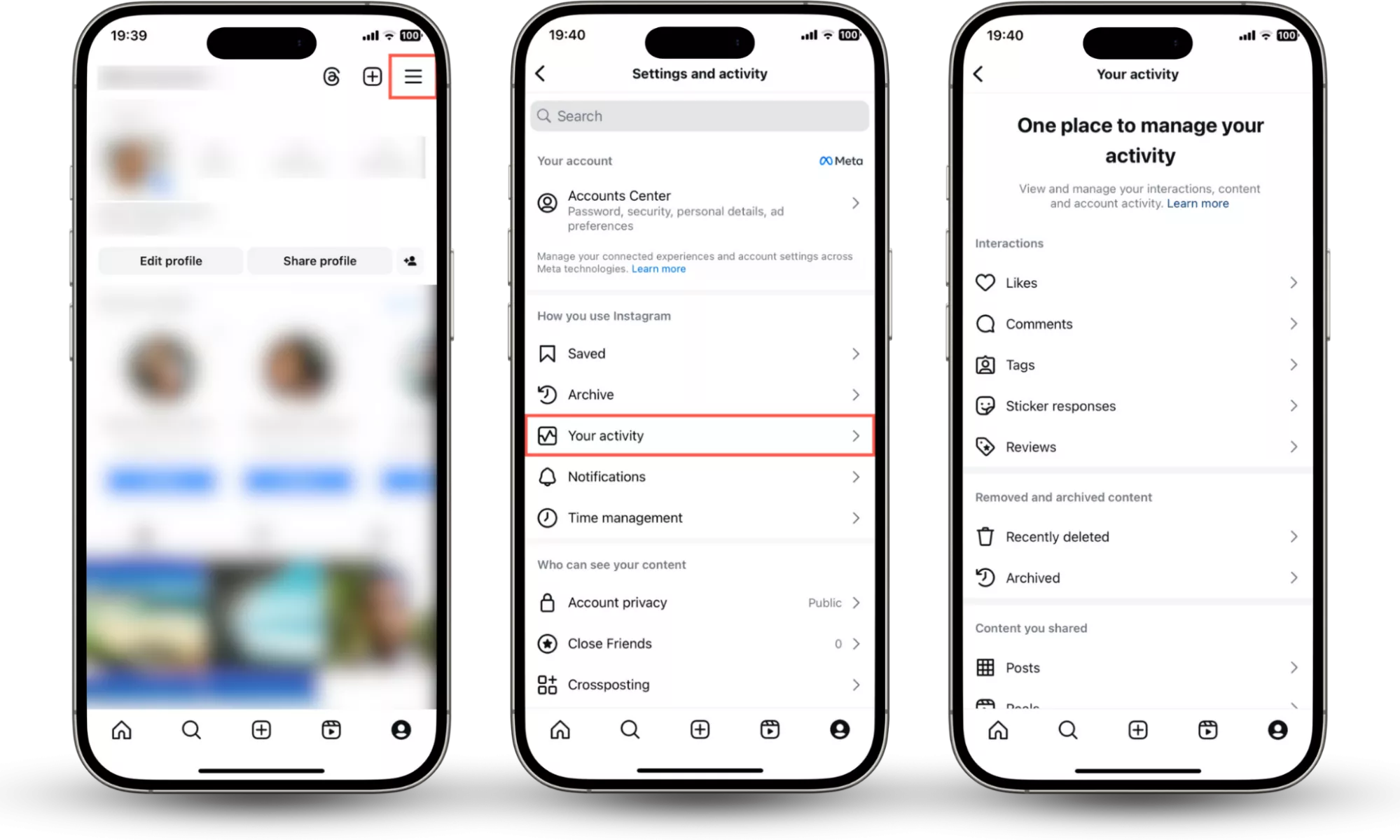 步驟 1-5:轉到“個人資料”>“設置和活動”>“您的活動”以檢查可疑帳戶活動。