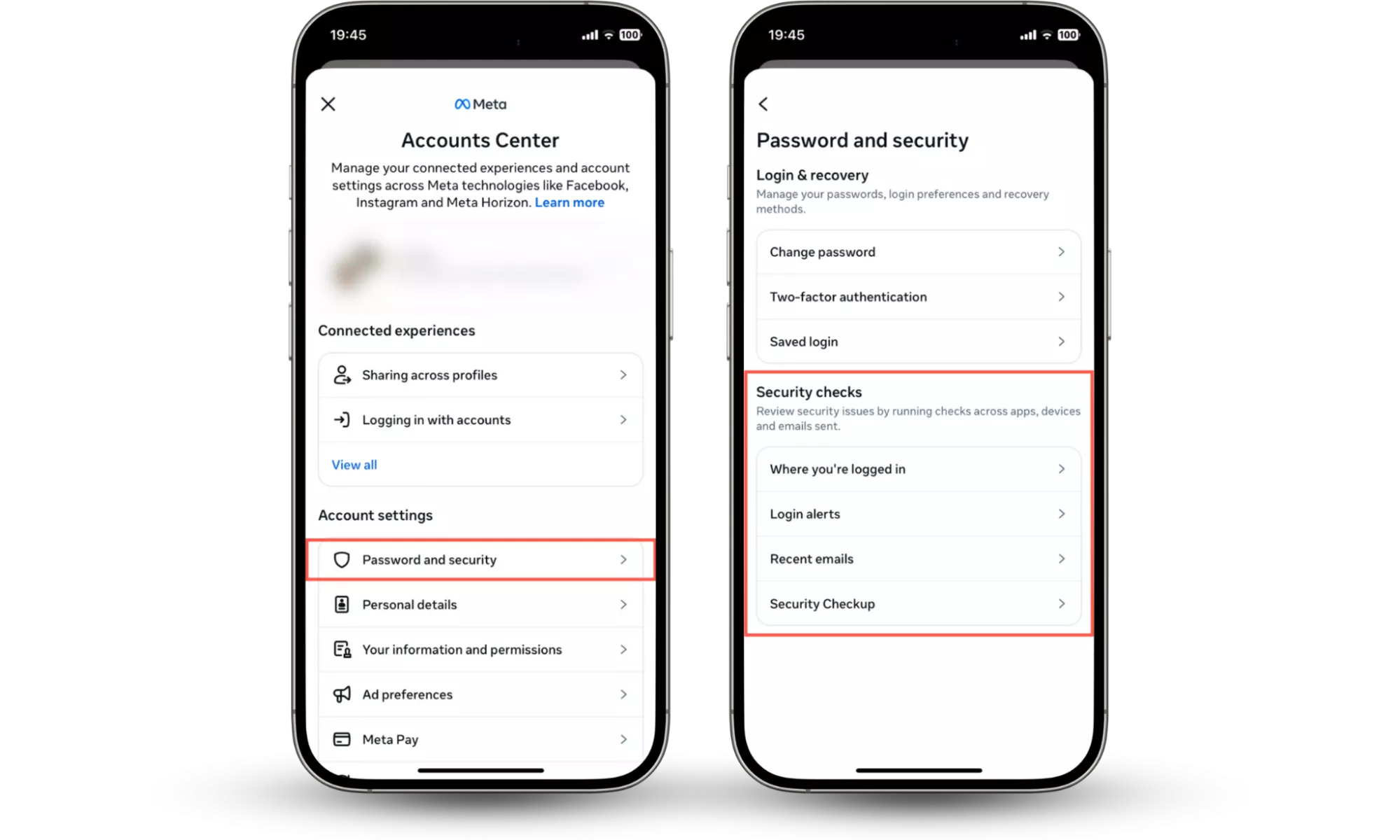 步驟1-3:進入賬戶中心>密碼和安全>安全檢查以監控可疑活動。