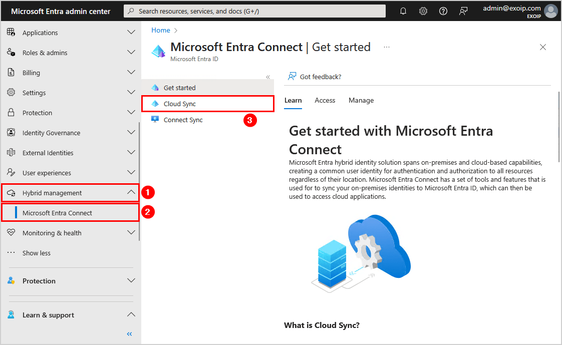 - 選擇混合管理 > Microsoft Entra Connect