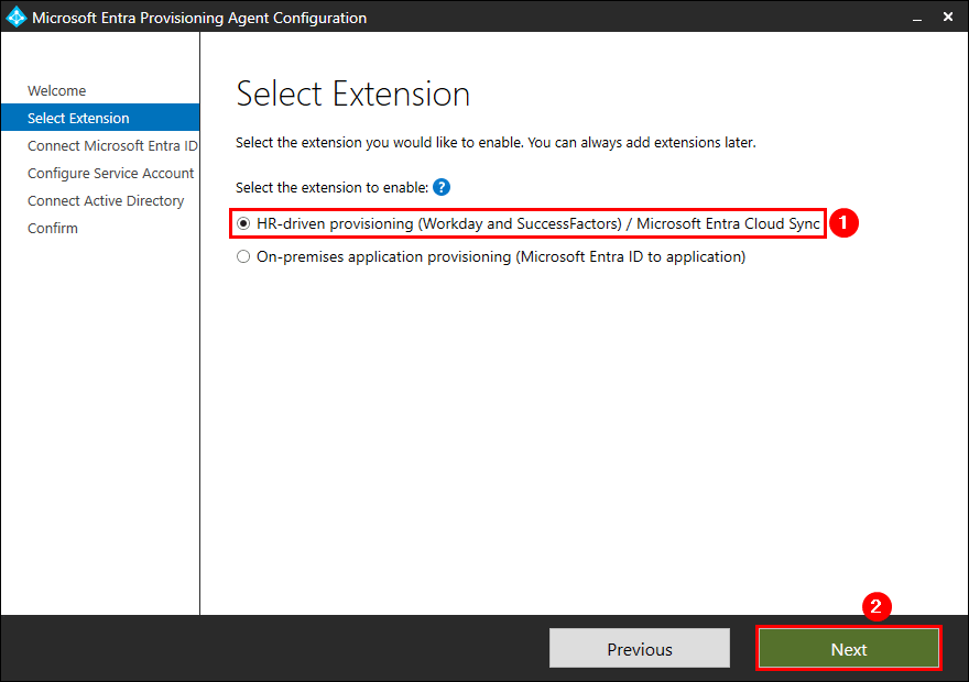 - 選擇HR 驅動的配置(Workday 和 SuccessFactors)/Microsoft Entra Cloud Sync