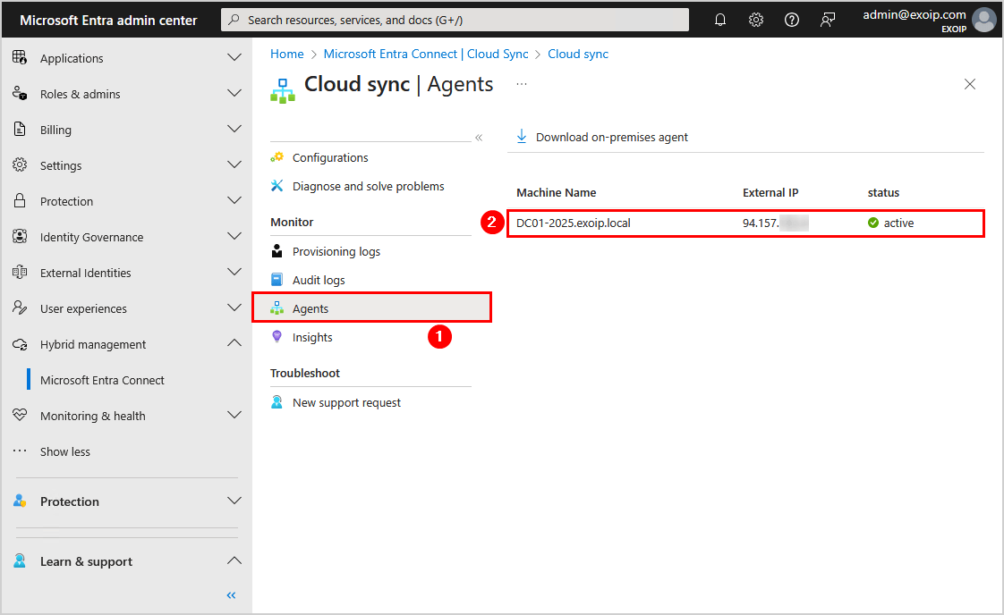 - 以管理員身份運行下載的 Microsoft Entra Connect Provisioning Agent 安裝程序