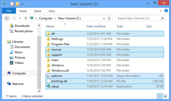 成功安裝 Windows 8 後,您可以轉到系統分區並選擇刪除之前從 ISO 映像複製的 Windows 8 安裝文件。
