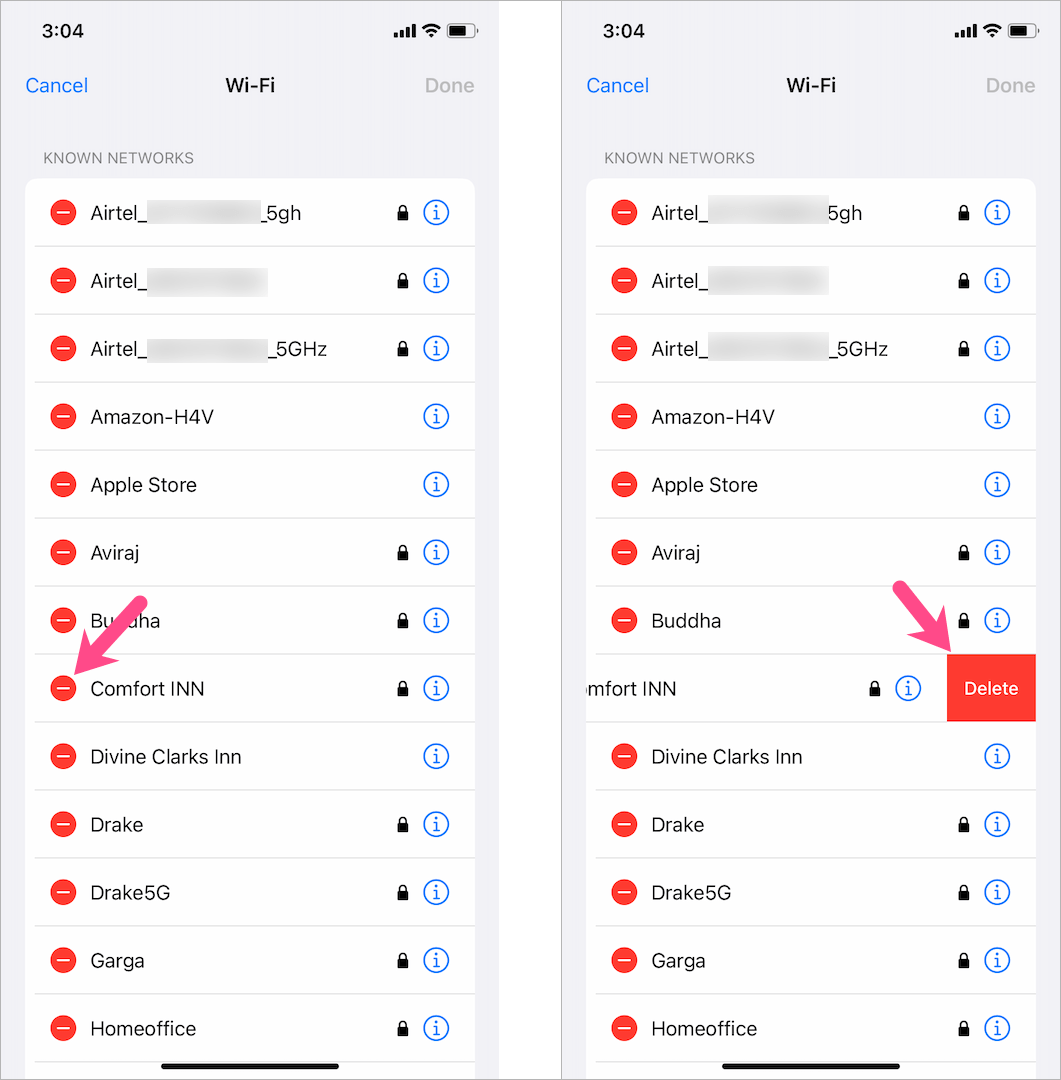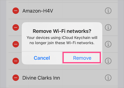 筆記:當您刪除某個網絡時,任何使用 iCloud 鑰匙串的設備將無法加入該 Wi-Fi 網絡。此外,目前還沒有辦法一次刪除所有保存的 WiFi。