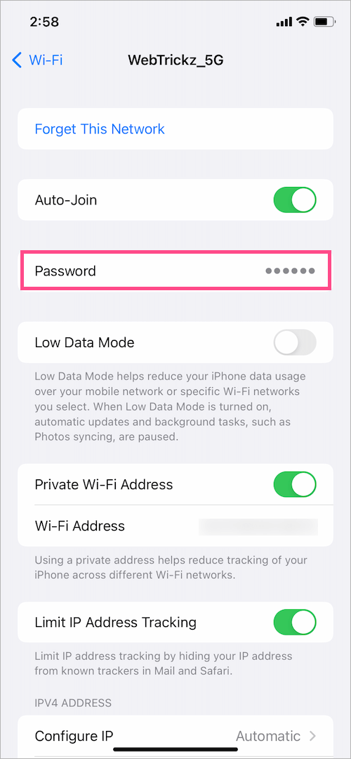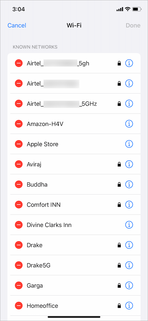 值得慶幸的是,iOS 16 及更高版本允許用戶訪問他們在 iPhone 或 iPad 上加入的每個 Wi-Fi 網絡的名稱。能夠直接在 iOS 設備上查看以前訪問過的網絡列表是一個很好的補充。您可以使用它來刪除舊的 Wi-Fi 網絡之一,忘記 WiFi 網絡不在範圍內時在您的 iPhone 上打開,或關閉隱藏網絡的自動加入。此外,它還可以幫助您找到已保存網絡的密碼和 Wi-Fi 地址。