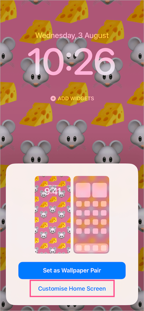 - 選擇“自定義主屏幕”選項而不是“設置為壁紙對”。