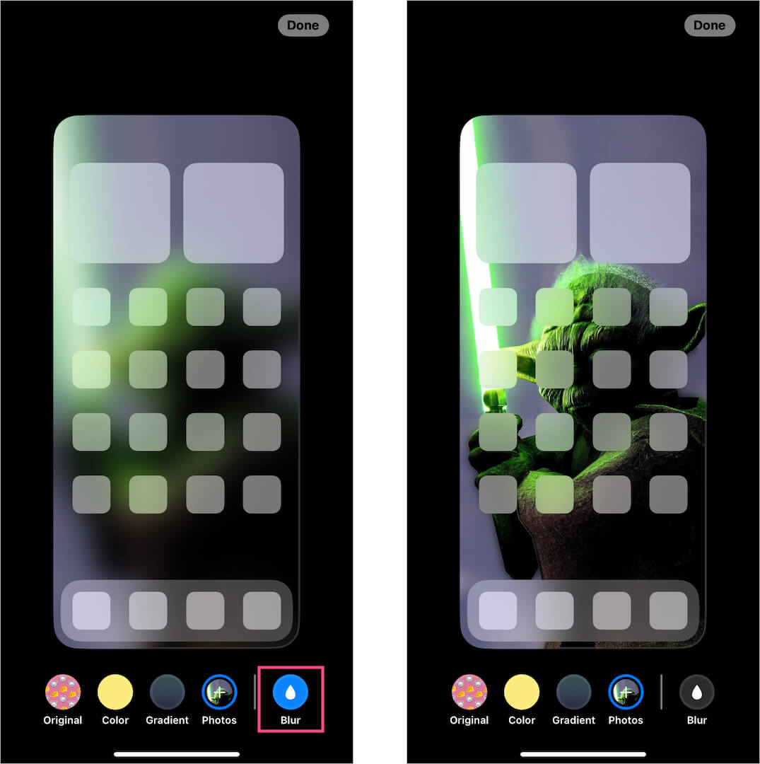 - 點擊“模糊最右側的“圖標可消除當前主屏幕上的模糊。您可以在上方看到更改。