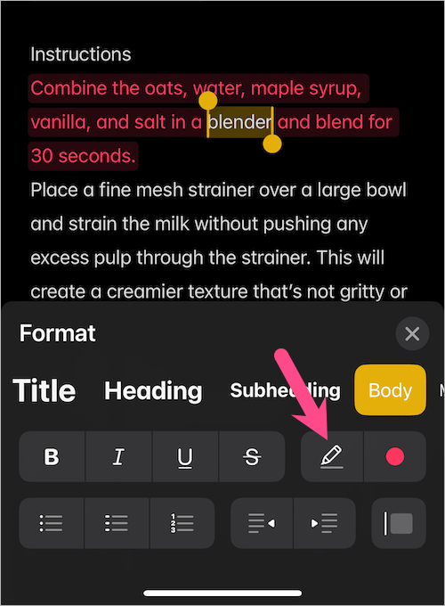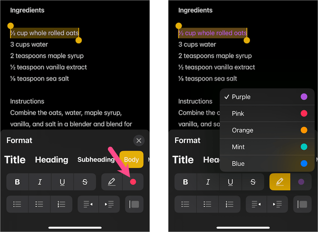 在iOS 18中,Notes包裝了另一種方便的格式化工具,稱為“突出顯示樣式功能”。這個新的標記工具使您可以輕鬆地在註釋中更改文本的顏色。這對於突出特定文本以使其脫穎而出很有用,這也使您的音符在視覺上吸引人和組織起來。