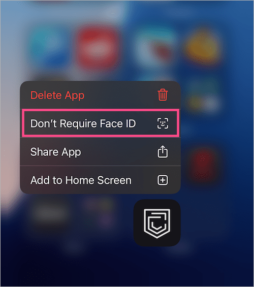 - 要取消隱藏應用程序,長按應用程序圖標並選擇“不需要面容 ID”。