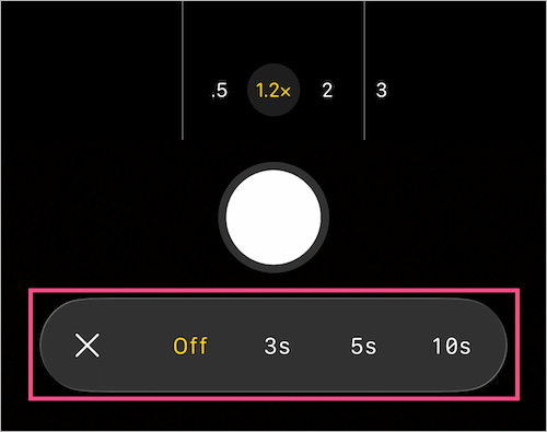 要關閉計時器,轉到相機應用程序中的計時器設置並將其設置為離開。