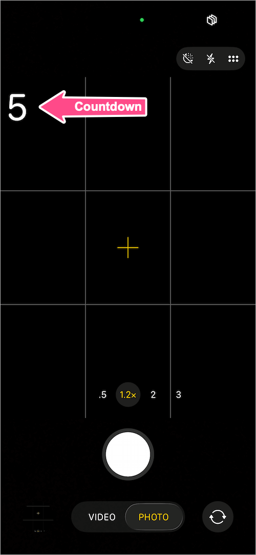 當您設置 3 秒、5 秒或 10 秒定時器並按下快門時,會出現倒計時,並且閃光燈每秒閃爍。然後 iPhone 捕獲連拍10張照片,並且您可以將計時器與前置和後置攝像頭一起使用。