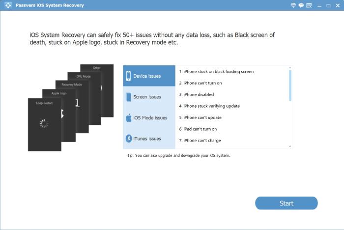 許多閃爍 Apple 標誌的案例都可以追溯到 iOS 問題。那就是那裡Passvers iOS 系統恢復Passvers 可以處理 50 多種不同的 iOS 故障,只需單擊一下即可修復系統文件並讓 iPhone 再次正常工作。