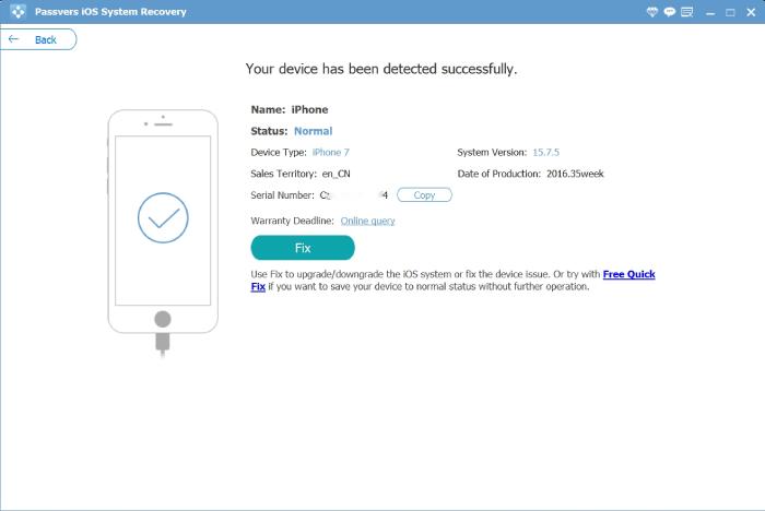 它可以自動檢測閃爍的 Apple 徽標背後的故障,並建議正確的修復模式 - 快速修復、標准或高級。您需要做的就是將有故障的 iPhone 連接到 Passvers,然後像撥打 123 一樣輕鬆解決問題。
