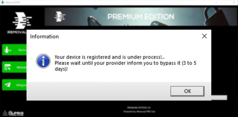 有很多工具聲稱可以解鎖 iCloud 激活鎖,但很少有工具像 iRemoval Pro 那樣令人困惑。首先,在iRemoval Pro官網上,沒有提到iCloud激活鎖或Hello Screen,只是宣傳自己是GSM/MEID信號旁路服務。此外,iRemoval在其官方Telegram頻道上積極邀請第三方推廣者成為經銷商,並向他們支付佣金。結果,許多用戶最終支付了過高的費用,被非官方賣家誤導,並且常常註冊不完整。