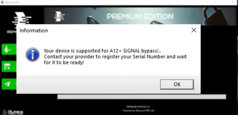 對於 iRemoval Pro(高級版):如果它與您的 iDevice 兼容,請單擊工具界面右側的 Telegram 按鈕。它將帶您進入他們的官方 Telegram 頻道。接下來,向他們發送消息:提及您的 SN 號、設備型號,並請求服務。