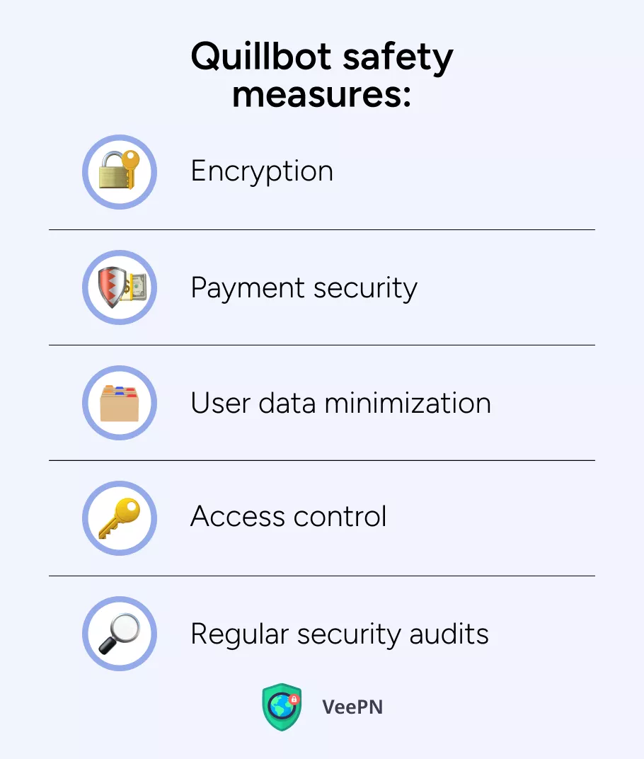 在談到用戶安全措施時,Quillbot提供了以下內容: