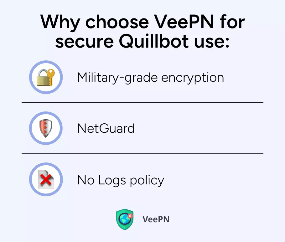 VEEPN可以很好地補充您安全使用Quillbot,因為具有以下安全功能: