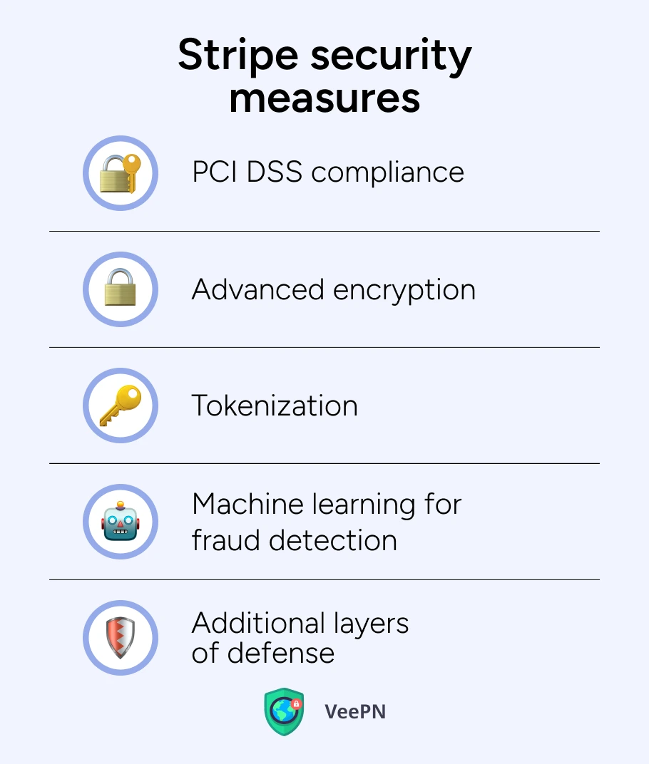 許多企業家將他們的銀行與 Stripe 支付網關毫無問題地連接起來。 Stripe 擁有安全的軟件開發,可保護持卡人數據和其他敏感數據免遭窺探。儘管如此,還是有一些與帳戶劫持相關的痛苦案例。有關更多詳細信息,請查看這篇文章。 Stripe 採用數據加密技術來保護用戶在線傳輸過程中的敏感卡數據。總的來說,這是一種安全的支付方式,但最好的決定是將其與 VeePN 等可靠的 VPN 結合起來。
