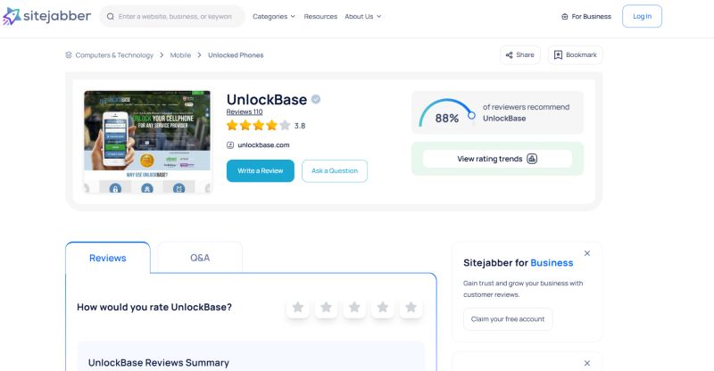 在 Sitejabber 上,UnlockBase 保持平均水平3.8 星評級穿過110 條評論。這裡的許多評論者似乎都是 B2B 用戶或批量經銷商。普遍情緒?對許多人來說可靠,對一些人來說令人失望。