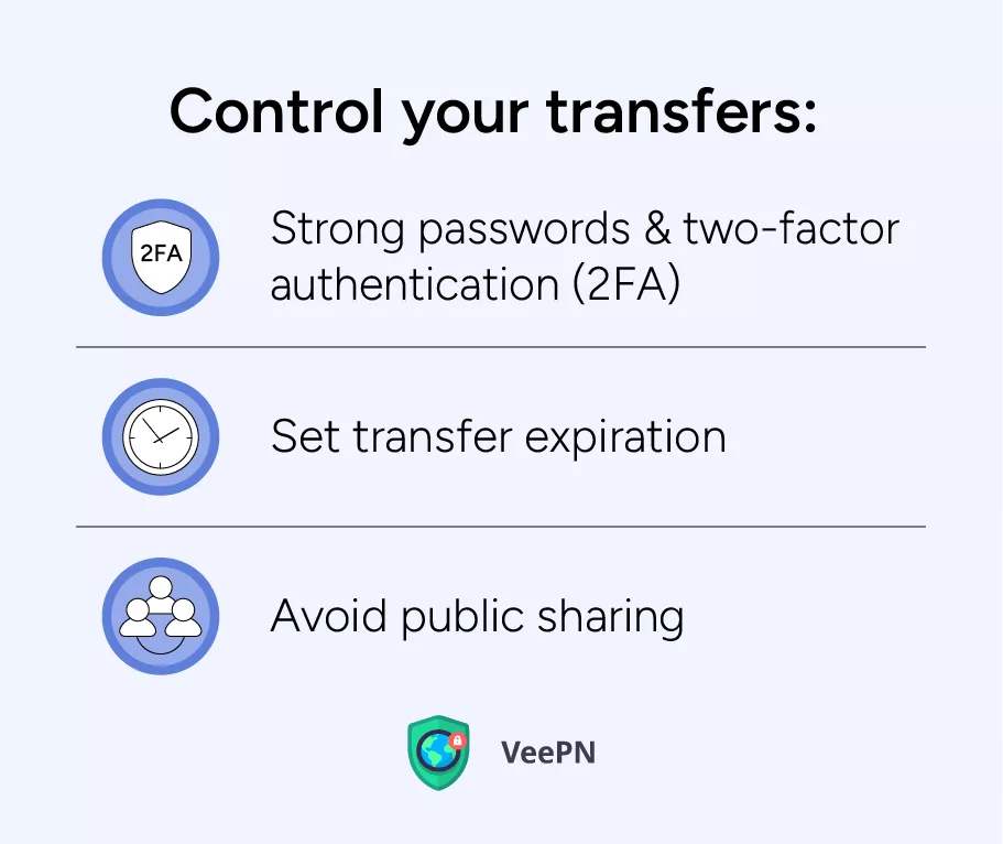 - 避免公開共享。不要在公共論壇或社交媒體上分享轉移鏈接。堅持通過安全通道將它們直接發送給預期收件人。