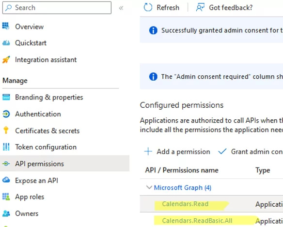 首先,我們來看看如何獲取 Exchange Online (Microsoft 365) 用戶郵箱中的日曆事件列表。 Microsoft Graph API 可以檢索有關用戶日曆中的項目的信息。首先在 Azure 中註冊一個新應用程序(微軟Entra ID->應用註冊->新註冊) 並授予其以下 Microsoft Graph 權限:Calendars.Read和Calendars.ReadBasic.All。