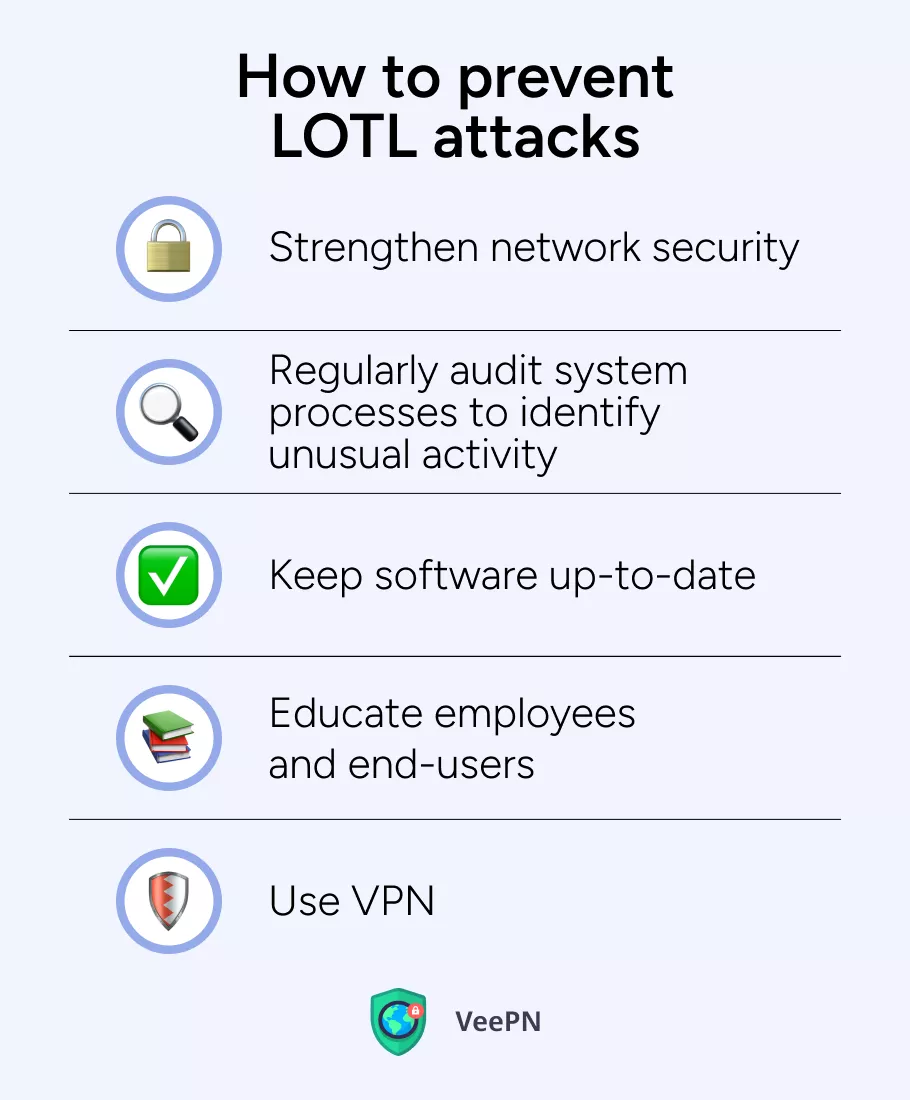 雖然 LOTL 攻擊很狡猾,但它們並不是無敵的。您可以採取一些步驟來顯著減少成為這些複雜策略受害者的機會: