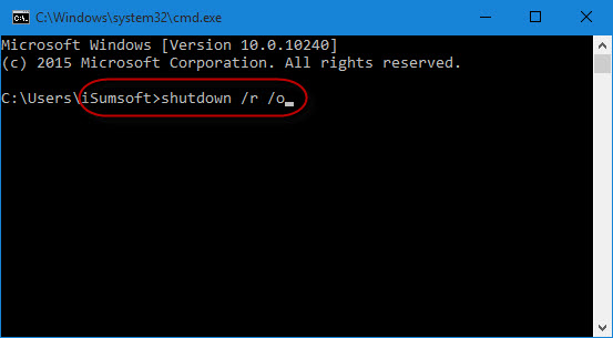 步驟8命令提示符窗口打開後,鍵入關閉 /r /o並按進入。