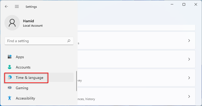 步驟一:選擇時間和語言從設置選項。