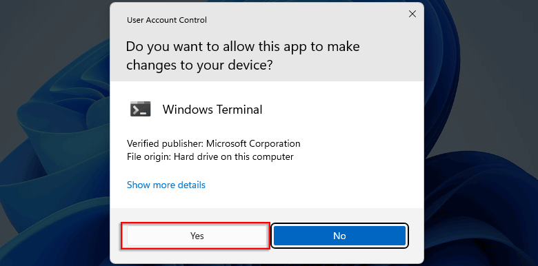 步驟2:點擊是的允許程序對您的設備進行更改。
