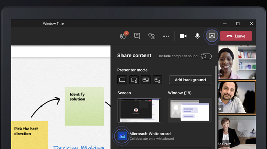 Microsoft 白板可讓您和您的團隊在 Teams 會議期間草擬想法、制定計劃並進行可視化協作。它內置於 Teams 中,因此無需打開其他應用程序。