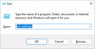 按視窗鍵+右一起打開“運行”框,鍵入以下命令並按 Enter 鍵訪問“設置”應用程序。