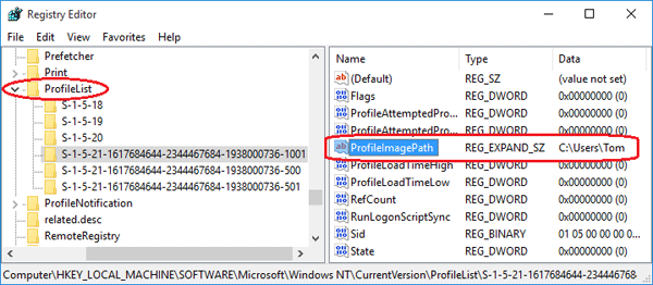 HKEY_LOCAL_MACHINE\SOFTWARE\Microsoft\Windows NT\CurrentVersion\ProfileList