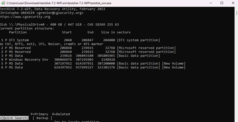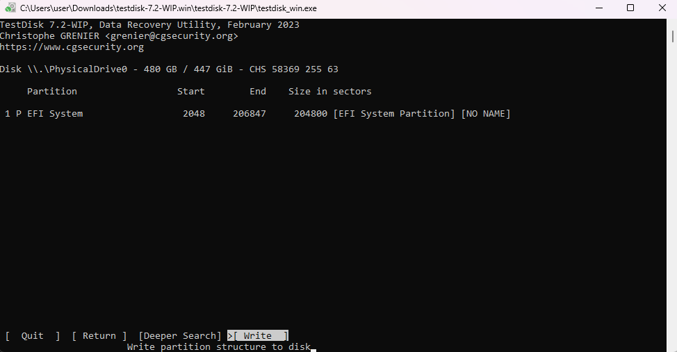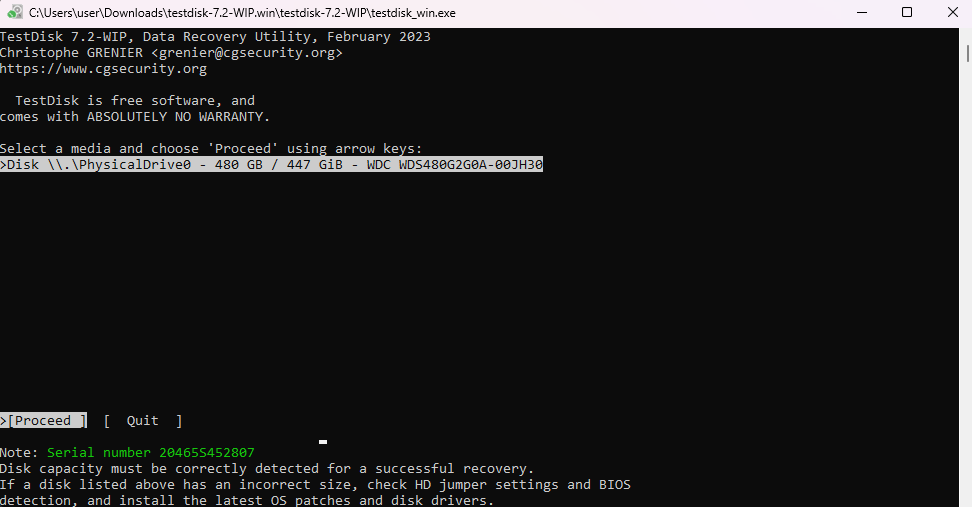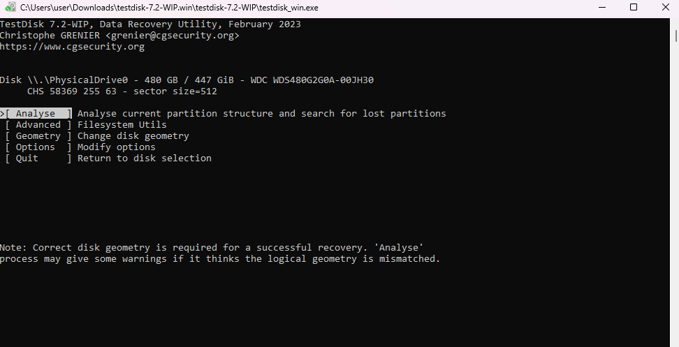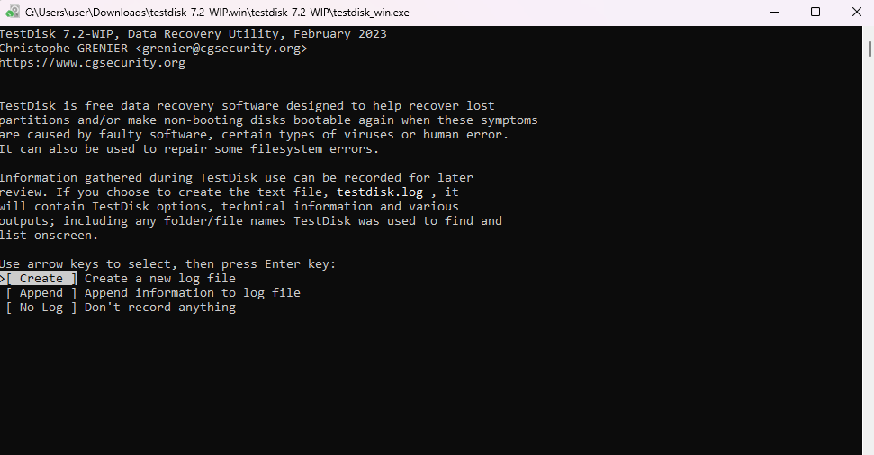- 解壓 .zip 文件中的文件,然後雙擊“testdisk_win.exe”以啟動該實用程序。