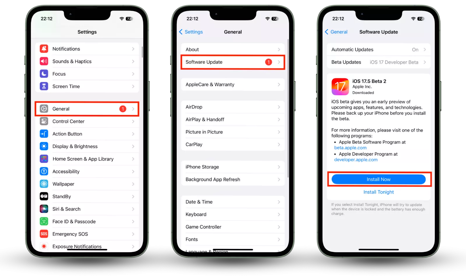 - 設置 > 常規 > 軟件更新。