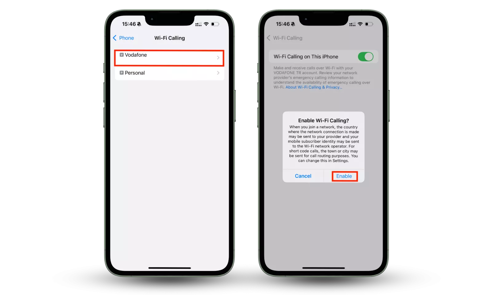 - 切換在此 iPhone 上進行 Wi-Fi 通話直到它變成綠色。